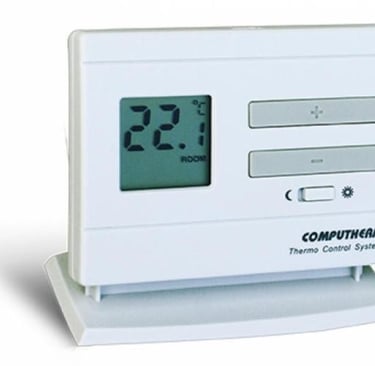 Computherm Q3RF este un termostat de cameră digital, neprogramabil, care comunică prin radiofrecvență (RF) cu un receptor conectat la centrala termică. Astfel, emițătorul (partea mobilă) transmite comanda de pornire/oprire cazanului receptoareului fără să ai nevoie de fire între ele. Este compatibil cu majoritatea centralelor de pe piața românească, indiferent dacă tensiunea de comandă e 24 V sau 230 V.